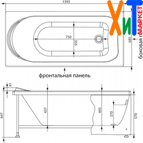 Ванна - 1 шт. Дополнительно: каркас, слив-перелив, панели