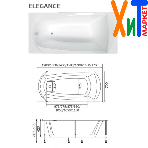Акриловая ванна ELEGANCE 120*70
