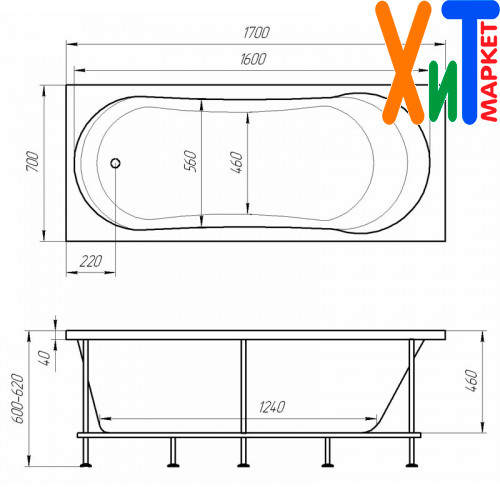 Ванна устанавливается на металлическую сварную раму, имеющую от 6 до 9 точек опор. Это значительно увеличивает устойчивость и прочность акриловой ванны.