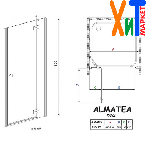 Душевая дверь в нишу Radaway Almatea DWJ 90 R стекло графит