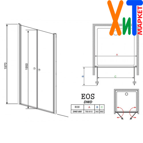 Душевая дверь в нишу Radaway EOS DWD 80 прозрачное стекло