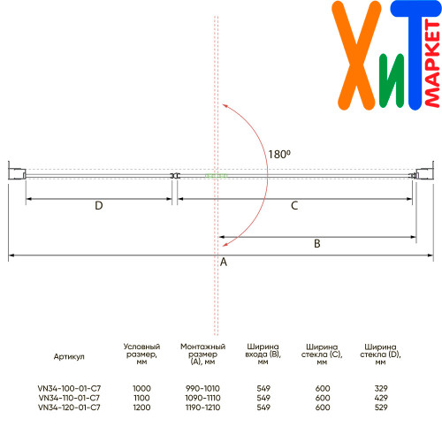 Душевая дверь Veconi Vianno VN-34B, 1100х1950, черный, стекло прозрачное