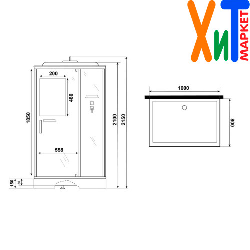 Душевая кабина Niagara Standart ST100/80/15Q/BK 100х80х200 прямоугольник,поддон 15см,распашная,проф.белый,без крыши