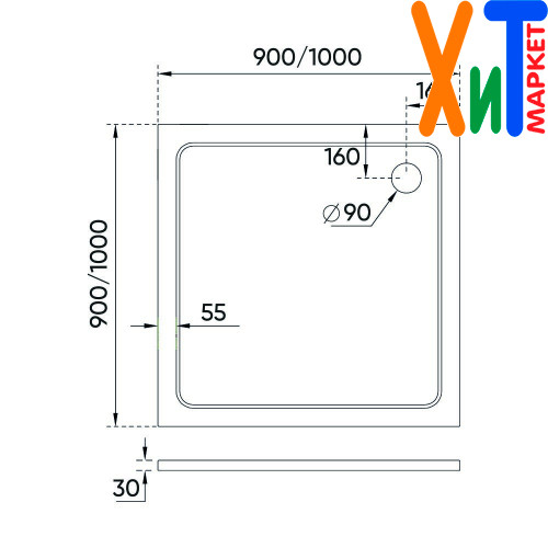Душевой поддон Veconi Tezeo stone TZ-08, 900x900x30, искусственный камень, белый