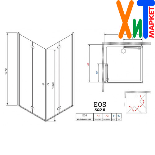 Душевой уголок Radaway EOS KDD-B 80x90 прозрачное стекло