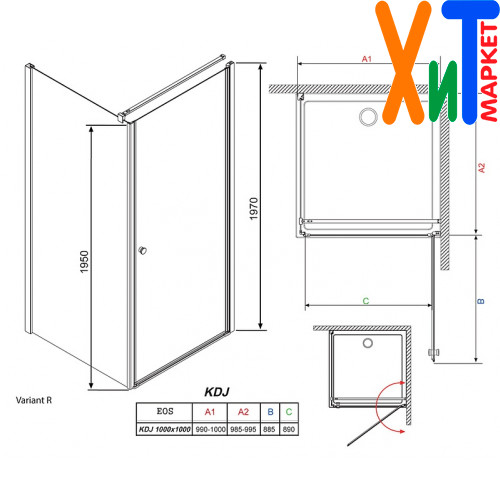 Душевой уголок Radaway EOS KDJ 100 прозрачное стекло R