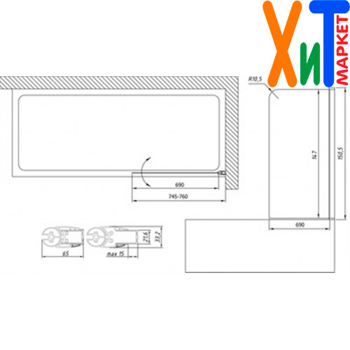 Шторка на ванну Vegas Glass EV Lux 0075 05 01 R профиль бронза, стекло прозрачное