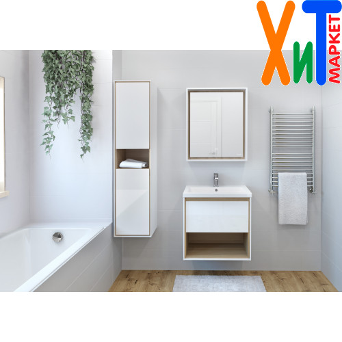 LOUNA – это коллекция, отвечающая последним тенденциям рынка: сочетание чистоты белого цвета и натурального дерева.Основной отличительной особенностью коллекции является её дизайн – сочетание белого с деревом, фрезерованная ручка, выдвижной ящик и удобная открытая полка для хранения.Пенал оборудован стеклянными полками и открытой нишей. Зеркала в коробе ЛДСП оборудованы сенсорной подсветкой.