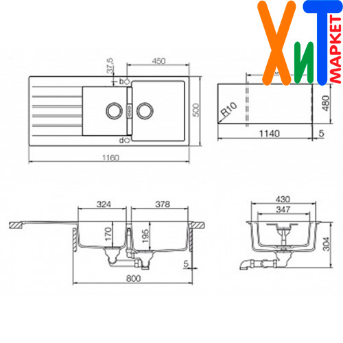 Комплект Мойка - 1 шт. Корзинчатый вентиль - 1 шт. Сифон - 1 шт. Сливная арматура с клапаном автоматом - 1 шт.