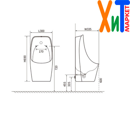 AQ3060-S-00 Писсуар, горизонтальный выпуск, 300*335*690, белый, в комплекте с сенсорным смывным механизмом