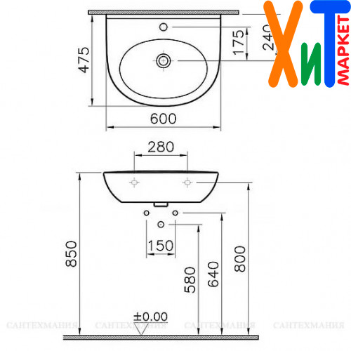 Раковина VitrA Zentrum 5786B003-0001 60 см