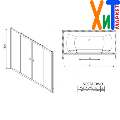 Шторка на ванну Radaway Vesta DWD 140 прозрачное стекло