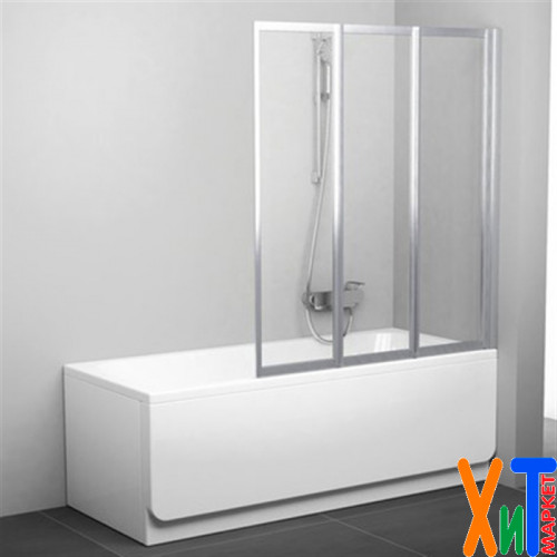 Шторка на ванну Ravak VS3 130 Transparent профиль сатин 795V0U00Z1, комплектуется прозрачным закаленным стеклом. Состоит из трех элементов и они на 21 см шире, чем VS2. Однако их также можно сложить и повернуть к стене, где эта шторка не будет занимать больше места, чем VS2.