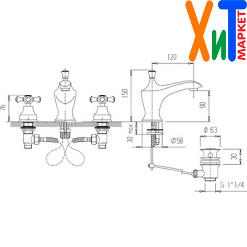 Смеситель Caprigo Monarch 41-021-crm для раковины, с донным клапаном