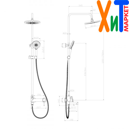 - Душевой шланг 1,5 м