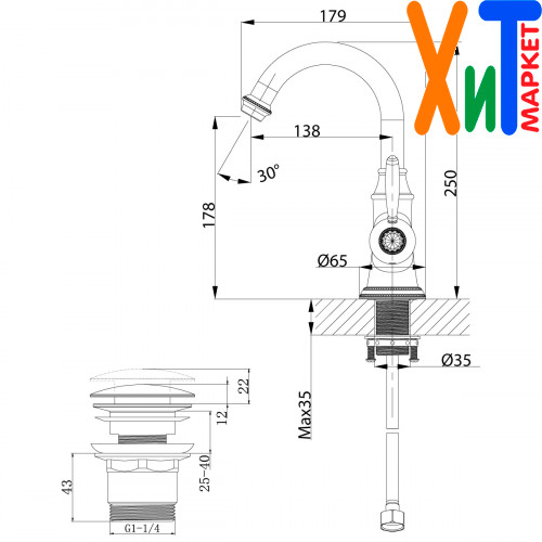 - Донный клапан Click/Clack 1¼" в цвет смесителя