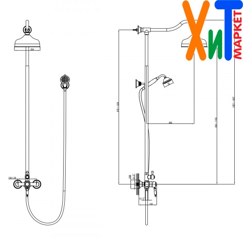 - 2-позиционный картриджный переключатель (угол поворота - 120⁰) Аксессуары в комплекте (верхняя душевая лейка «Тропический дождь» Ø204 мм, 1-функциональная лейка Ø78х215 мм, настенное поворотное крепление для лейки, душевой шланг 1,5 м)