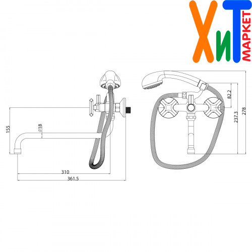 - Аксессуары в комплекте: шланг 1,5 м, 5-функциональная лейка Ø100 мм